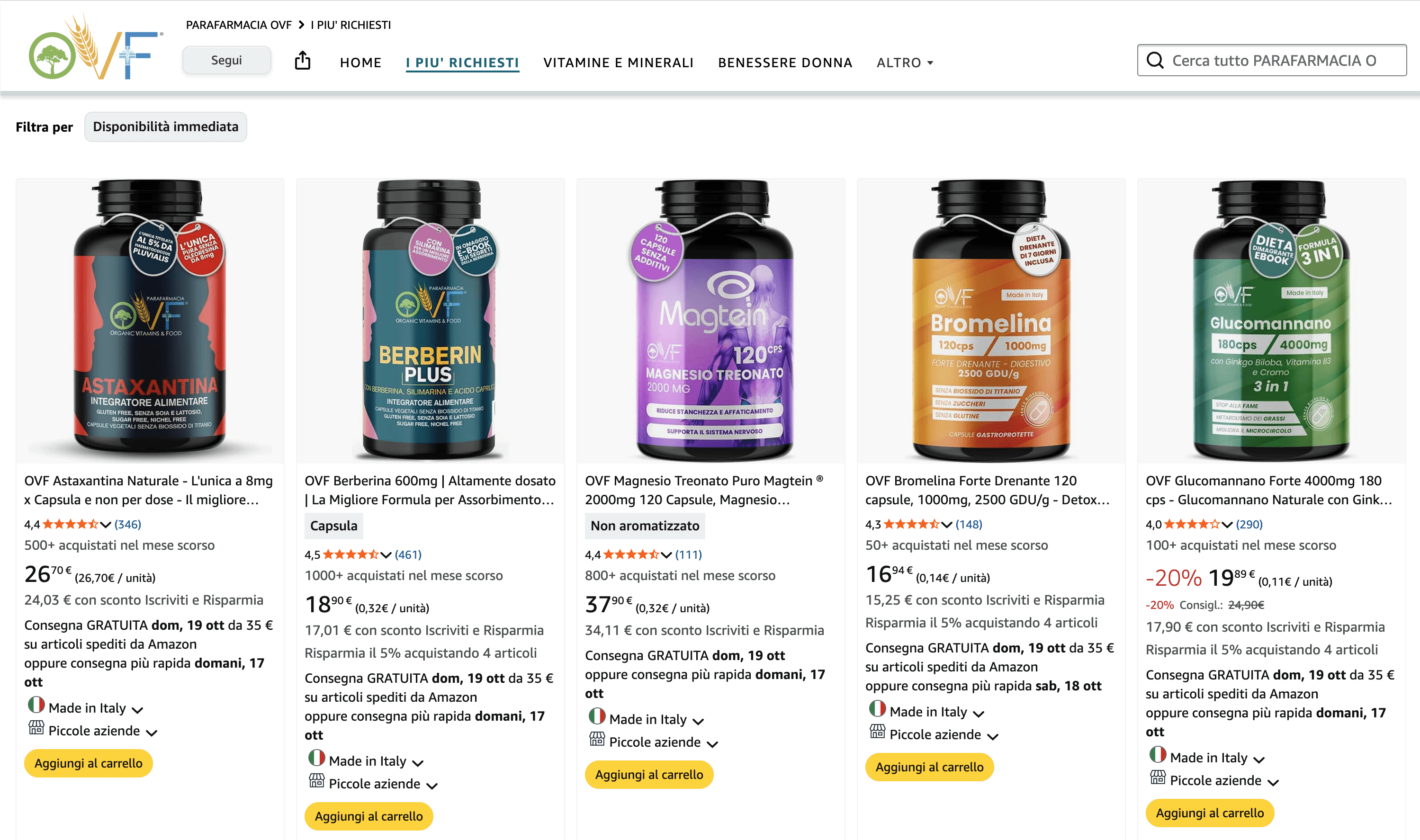 Parafarmacia OVF è un brand di integratori Premium orientato alla Longevità, con focus su formulazioni avanzate e qualità elevata. Grazie a un laboratorio interno altamente specializzato, sviluppa e controlla direttamente prodotti naturali ad alta biodisponibilità. Il catalogo conta circa 65 integratori, pensati per supportare benessere profondo, performance e healthy aging con un approccio nutraceutico di fascia alta.